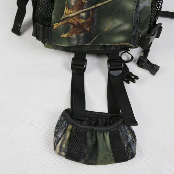 Large front pocket with 2 side water bottle pockets for storage of camo netting ghillie suit and any other hunting accessories,